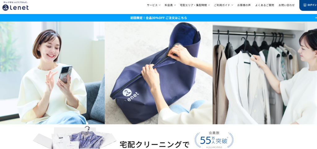 リネットは宅配専門のクリーニングサービスで、スマホ完結・集荷無料が特徴。自宅にいながら24時間申し込みできる利便性は、忙しい共働き夫婦の強い味方です。プレミアム会員なら最短2日仕上げにも対応。さらに「再仕上げ無料保証」付きで安心感も高いです。