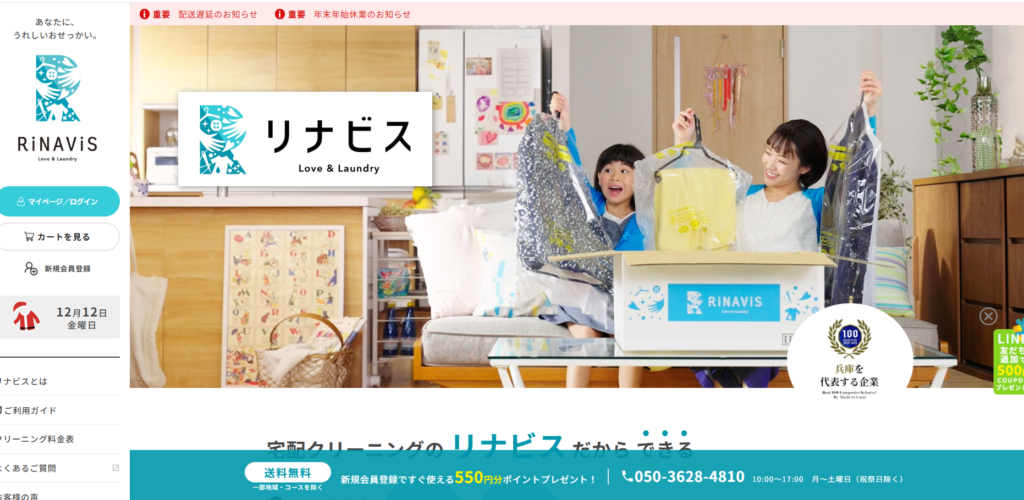 兵庫県の老舗が運営する宅配クリーニング「リナビス」。熟練職人による手仕上げで「丁寧なクリーニング」として口コミ評価が高いです。6ヶ月無料保管サービスがあり、衣替え時期にも便利。共働き家庭でも季節ものの保管に困りません。