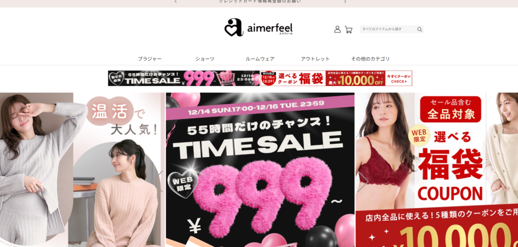 | 2位 | aimerfeel(エメフィール) | 盛れる&快適 | 1,900円〜 | shop.aimerfeel.jp |
