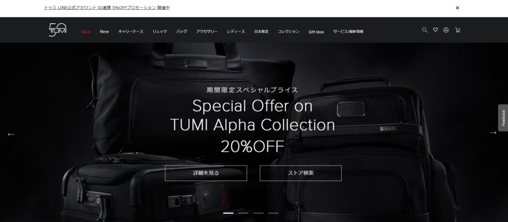 ・TUMI公式サイトで刻印・ギフト包装サービスあり