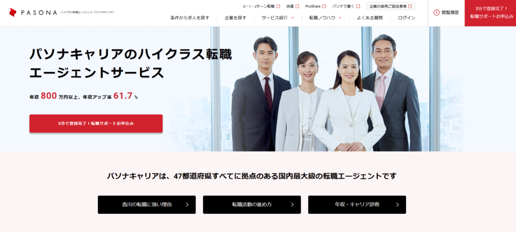 パソナキャリアは「女性の転職支援」に特化したエージェント。女性管理職登用企業や時短勤務可能な求人など、柔軟な働き方を重視した案件が豊富です。担当コンサルタントの質が高く、長期的なキャリア相談にも対応。出産・育児などのライフイベントを考慮した転職支援を行っており、安心感があります。