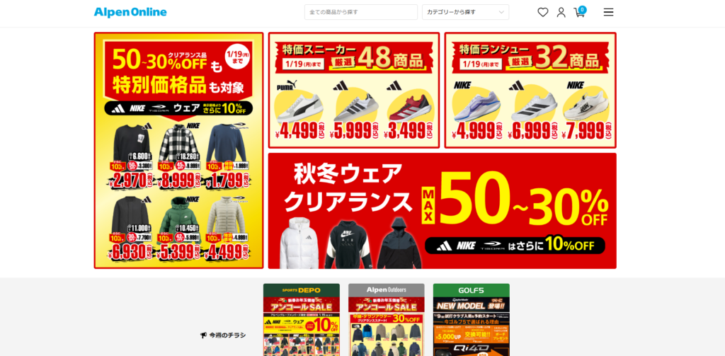 オンライン限定セールや会員特典も多く、コスパ良くスポーツ用品を揃えたい方に最適。