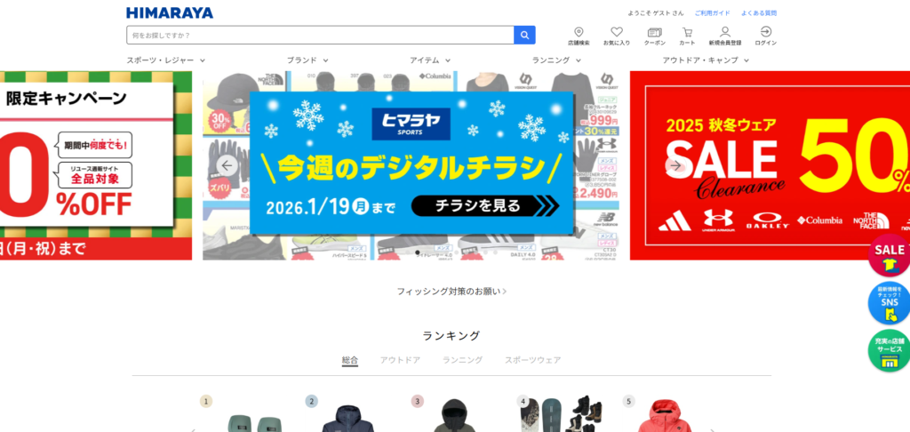 ヒマラヤは、全国展開するスポーツ専門店のオンラインストア。