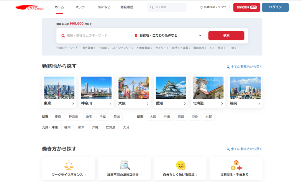 リクナビNEXT無料求人数・診断ツールが業界最大級