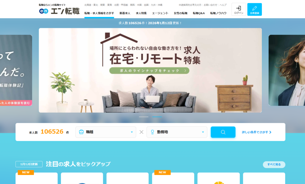 エン転職は、慎重に転職活動を進めたい第二新卒層に最適です。実際の社員の口コミを確認できるため、応募前に職場環境を具体的にイメージできます。情報量の多さと誠実な掲載内容が魅力で、安心感を重視する方におすすめです。
