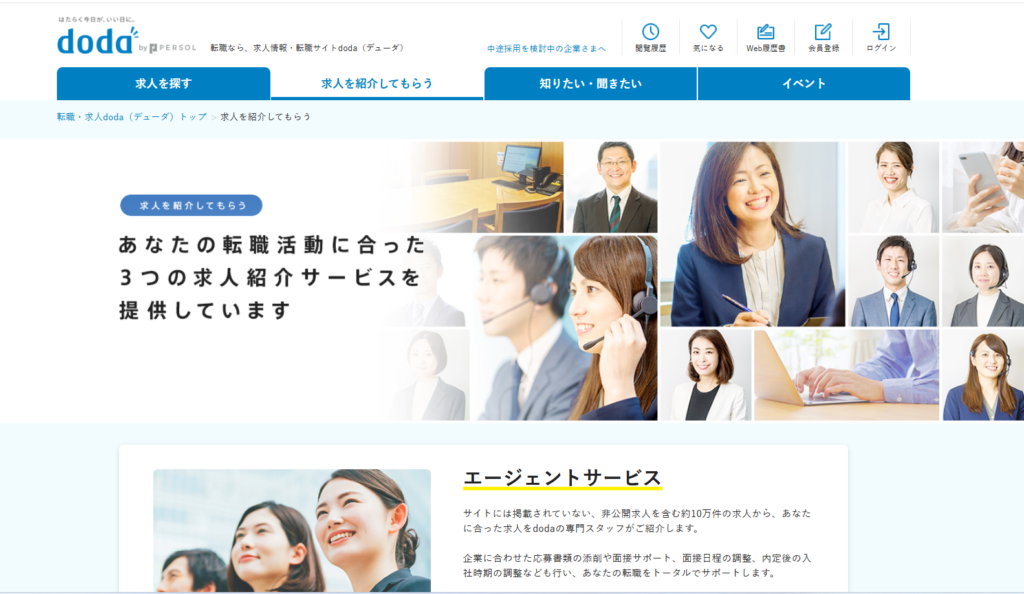 dodaは、転職エージェント機能と求人検索機能を兼ね備えた総合転職サービスです。第二新卒・未経験向けの求人も豊富で、キャリアアドバイザーによる無料サポートが魅力。履歴書添削や面接練習など、プロの支援を受けながら転職活動を進められます。非公開求人も多く、幅広い選択肢の中から自分に合う企業を見つけることが可能です。
