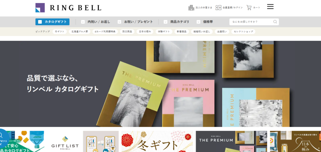 リンベルは、カタログギフト専門の大手ブランドとして高い知名度を誇ります。豊富な価格帯とジャンルで選べるため、予算やシーンに応じたギフトが見つけやすいのが特徴。結婚・出産祝いから法要まで幅広い用途に対応しており、老舗ブランドならではの信頼感があります。百貨店品質の商品が多く、安心して贈れる定番ギフト通販サイトです。