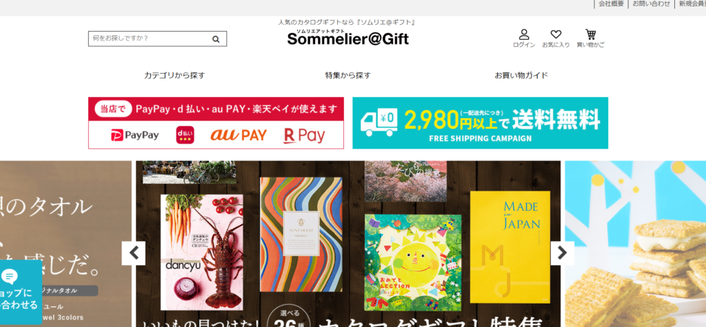 ソムリエ@ギフトは、楽天市場などでも高評価を得ている人気ギフトショップです。カタログギフトを中心に、スイーツ・グルメ・名入れギフト・タオルギフトなど多彩なラインナップを展開。デザイン性の高いパッケージと手頃な価格帯で、20〜30代女性から支持を集めています。おしゃれで可愛いギフトを探す人におすすめのサイトです。