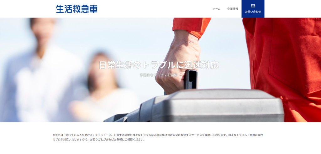 生活救急車は、水回りだけでなく生活全般に対応できる総合サービスです。水道トラブルだけでなく、他の困りごとにも一括で対応してほしい方におすすめ。対応スピードと汎用性が強みです。