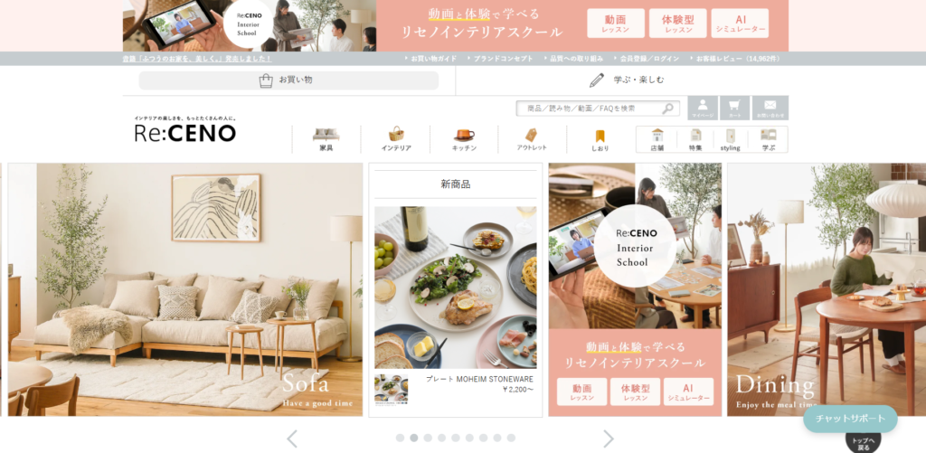 | 3位 | RECENO | ★★★★☆ | ★★★☆☆ | ★★★★★ | 新生活キャンペーン | ◯自然素材派 |