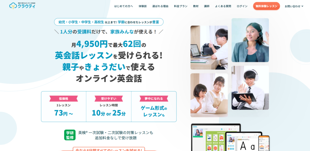 家族で英語を学ぶならクラウティが最適!