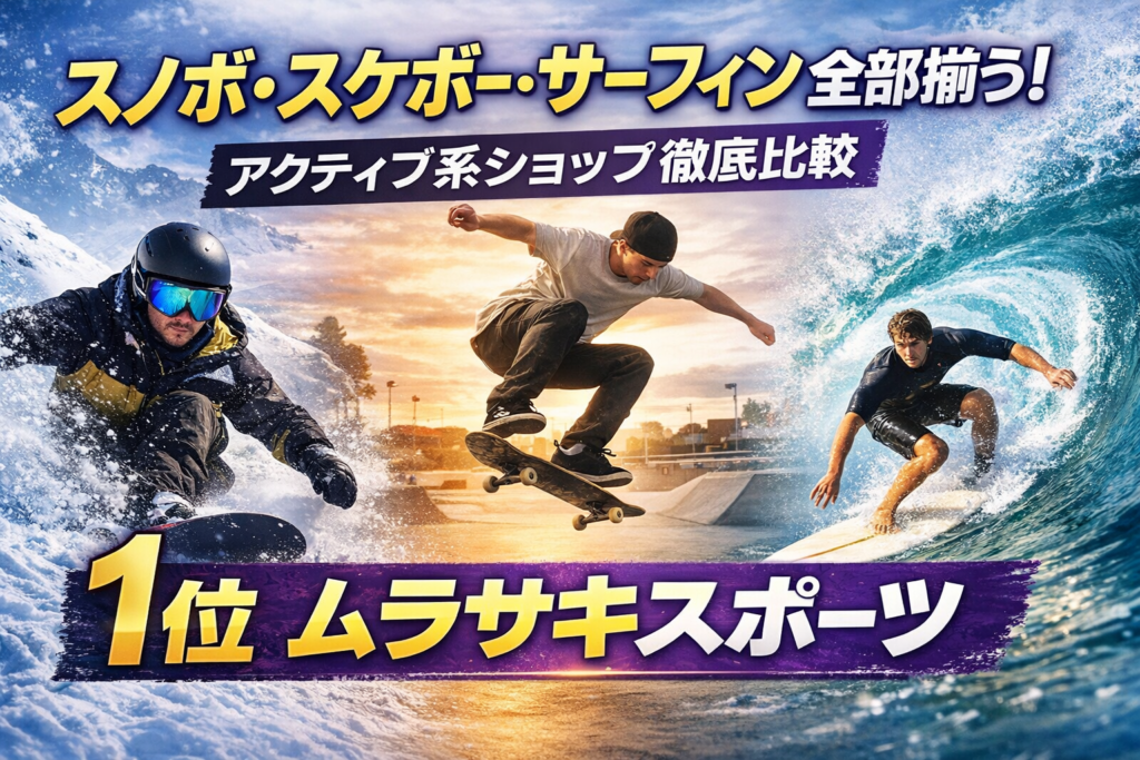 特に1位の「ムラサキスポーツ」は、スノボ・スケボー・サーフィンを丸ごとカバーする圧倒的な品揃えで支持されています。