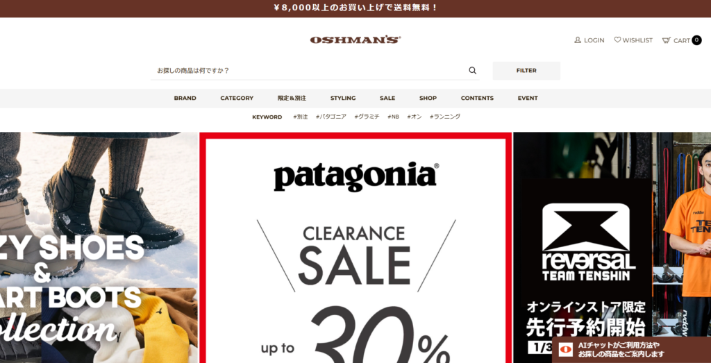 オッシュマンズは“街でも着られるアクティブスタイル”を求める層に最適。特に女性人気が高く、機能美を重視したラインナップが強み。
