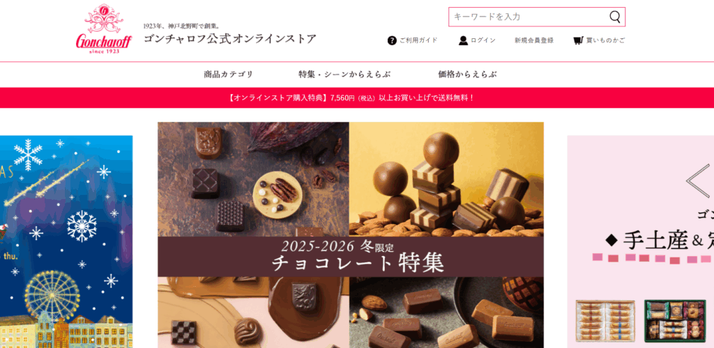 ベルギー生まれの高級チョコブランドとして世界的な知名度を誇るGODIVA。オンラインショップでは定番のゴールドコレクションから季節限定シリーズ、アソートメント、焼き菓子ギフトまで幅広く展開されています。特にギフト用の包装が美しく、女性からの評価が非常に高いのが特徴です。高級感がありながら購入ハードルが低く、価格帯も贈り物として最適。オンライン限定セットや送料無料キャンペーンなど、店舗にはないお得な特典があるのも魅力。ラッピング・配送品質ともに信頼性が高く、「外さないギフト」を求める男性に最も選ばれているブランドです。